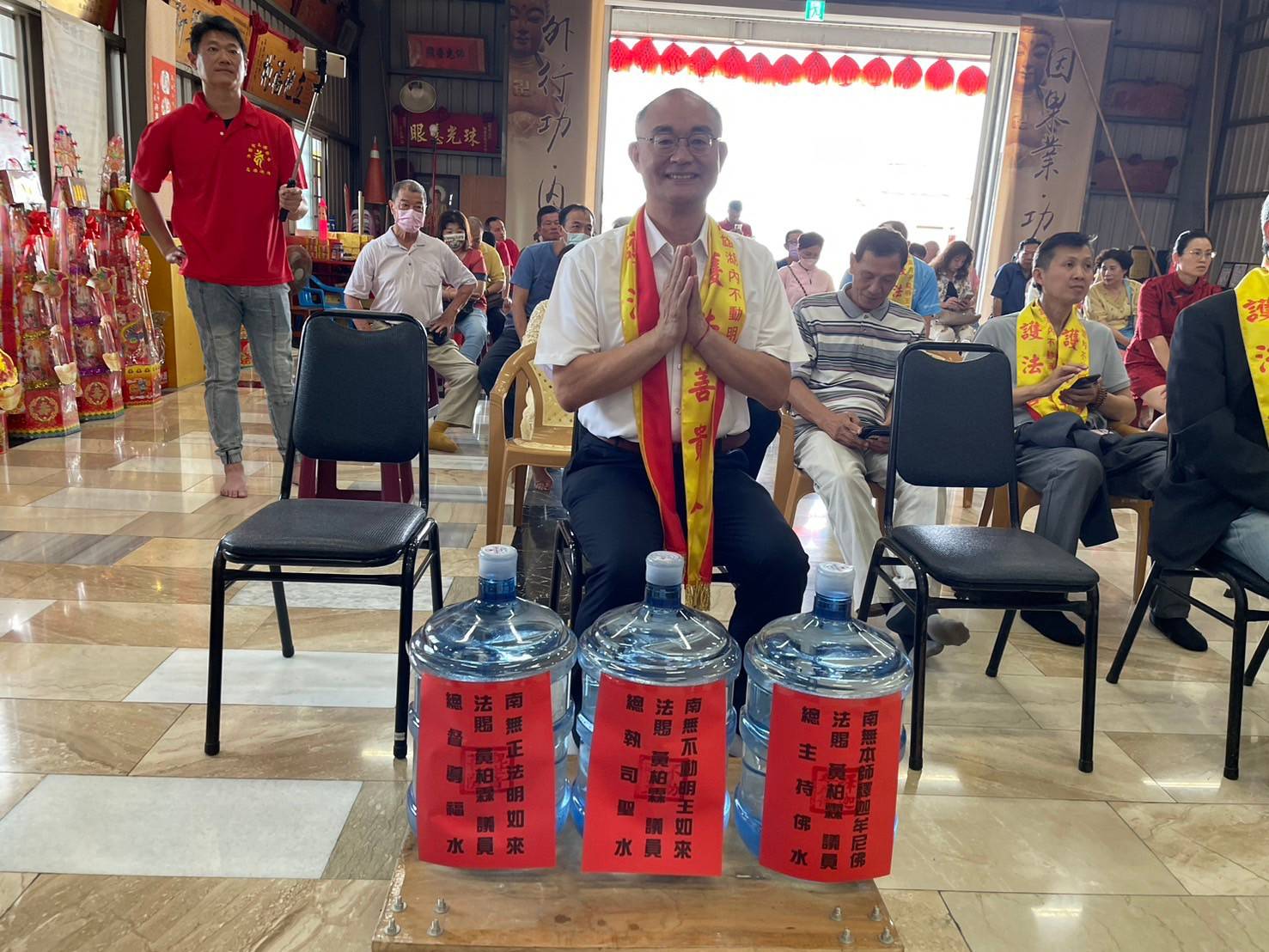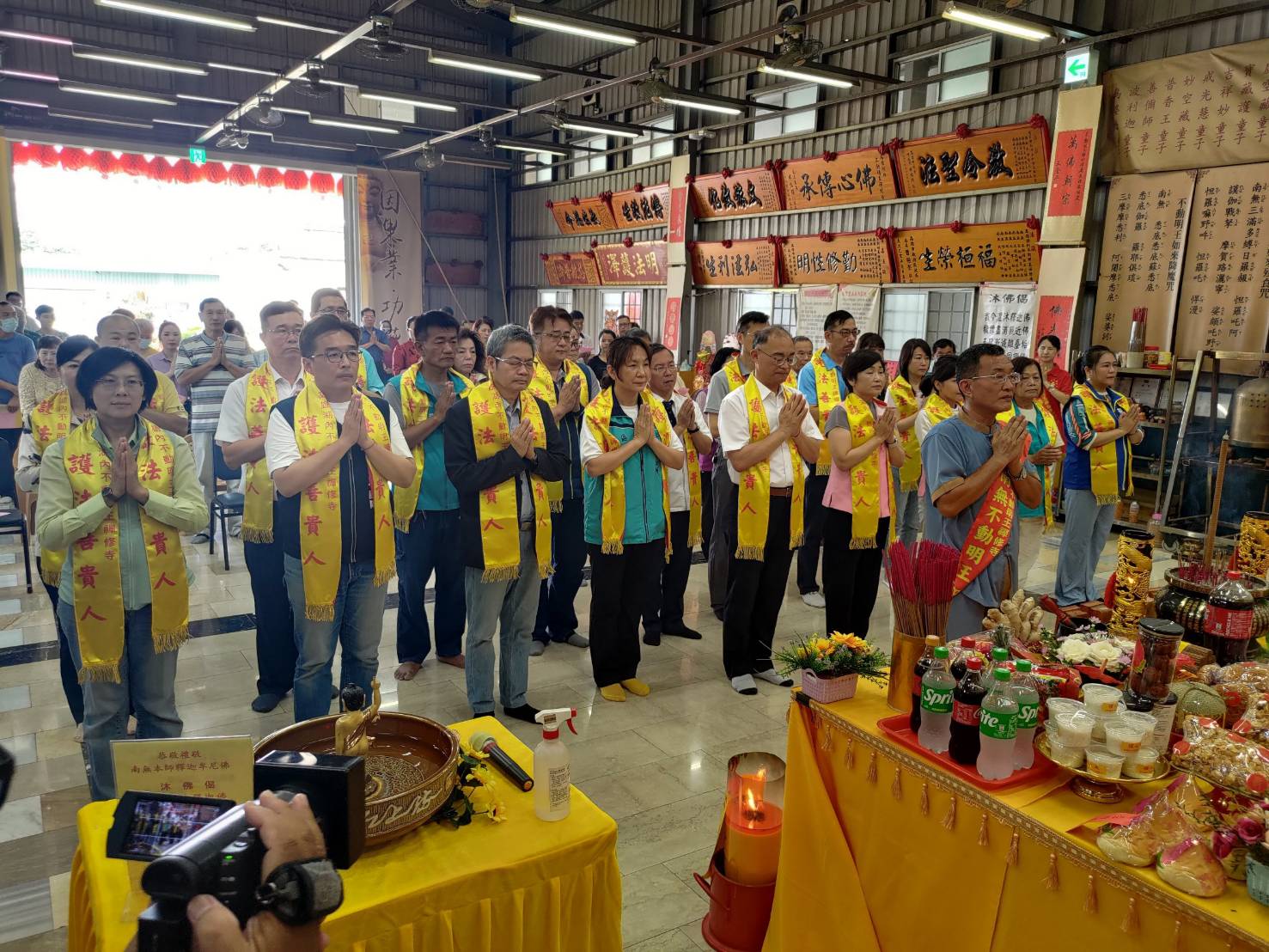 不動明王如來法開罕見的「水火法寶壇城」為參會法會者消解業力、增財增緣,修眾誠獻靈性法花於每位嘉賓,茲令與會立委、議員、里長、企業家、社團會長,感受到靈性的加持。柯志恩立委、黃昭順前立委、陳明澤議員太太郭淑容主任和特助女兒陳琳潔、鄭安秝議員、陳粹鑾前議員、陳玫娟議員、前民政局長曹桓榮、前議長曾麗燕助理吳家樺、李順進議員副主任張玉杰、黃仁立委秘書楊迦淇、陳菁徽立委秘書黃耀進、黃明太議員主任謝明軒、李亞筑議員助理康秀雲、高空大校友會長陳芳綵、高雄市體操協會理事長蘇莉湘、路竹頂寮長青協會理事長黃正煌、湖內調解主席朱有山、清水寺代天府前主委辜德仁、上市上櫃協會創辦人施明豪董事長、向台實業劍橋博士朱庭界、玖勝保全董事長項祐宸、餐飲業邱奕強董事長、綠璟公司總裁傅珍妮、扶輪社社長林清源及眾多社團領袖幹部等,共200多人都親臨法會會場,並有賴清德、柯文哲、韓國瑜及花蓮縣長徐榛蔚和諸多議員、各界社團會長誠意致贈中堂墨寶、壽麵、鮮花給予祝賀。