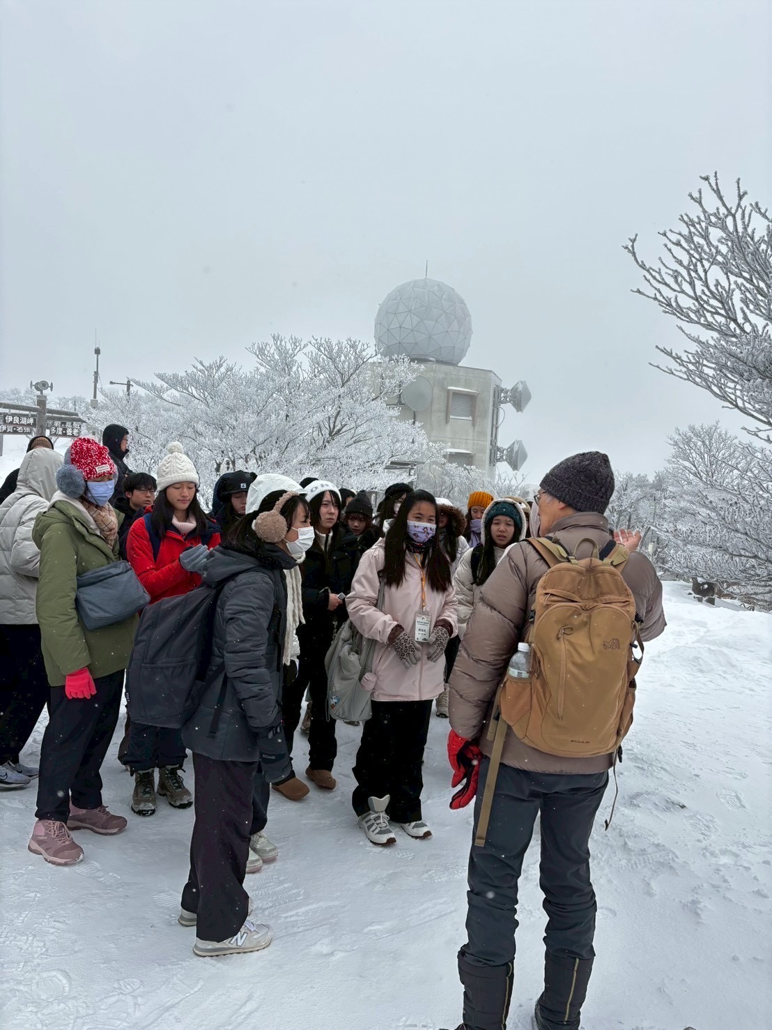 日本國立三重大學立花義裕教授為學生講解樹冰成因。