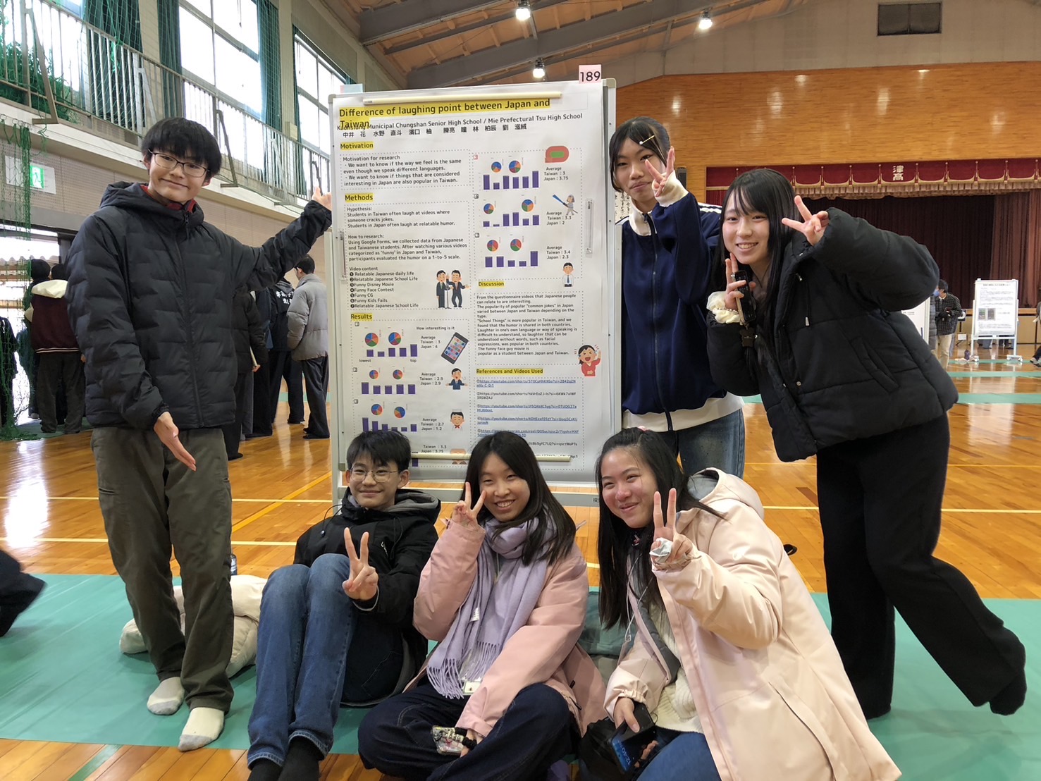 台日兩校學生共同發表專題探究成果。(中山高中學生:前排左至右:林柏辰、陳亮瞳、劉滋絨)